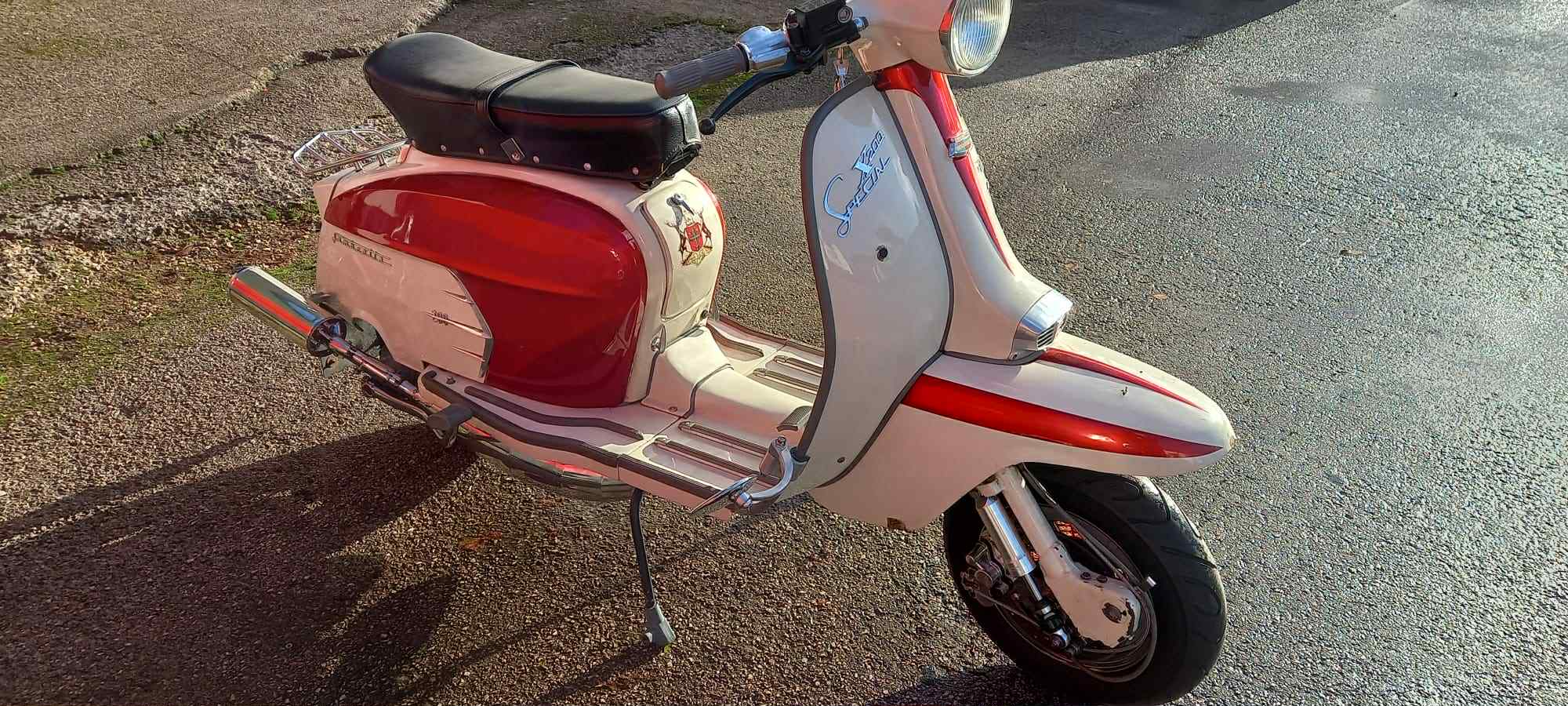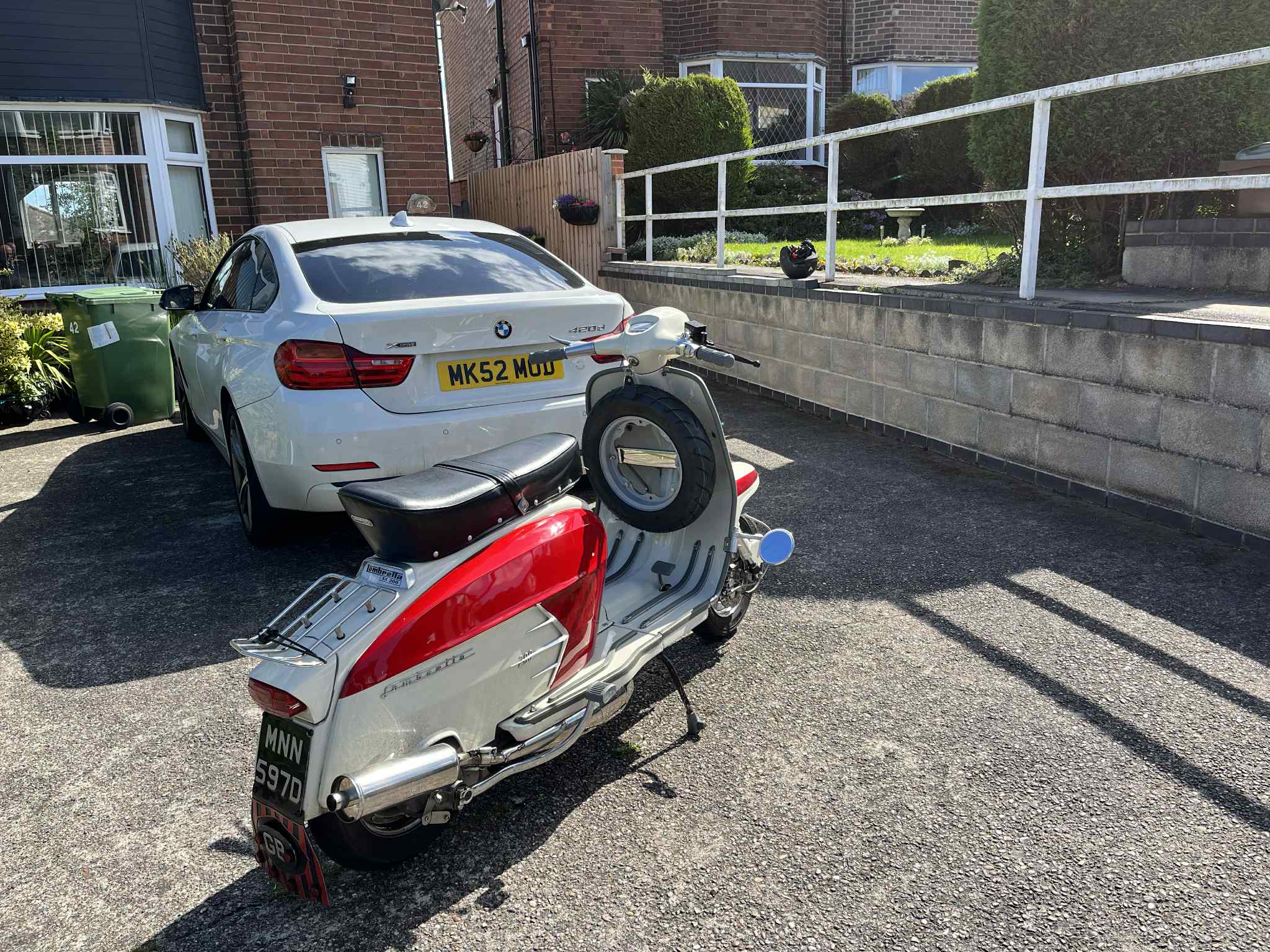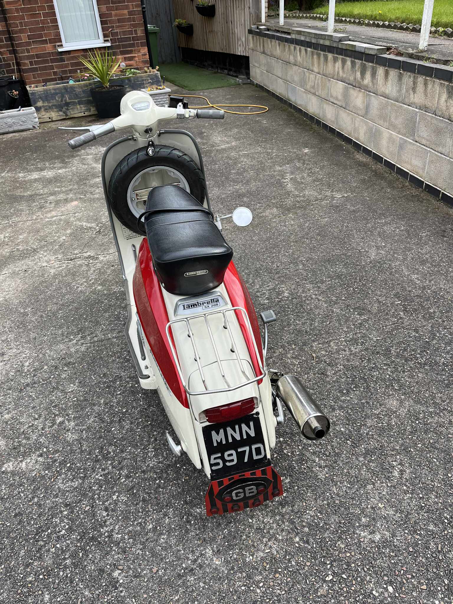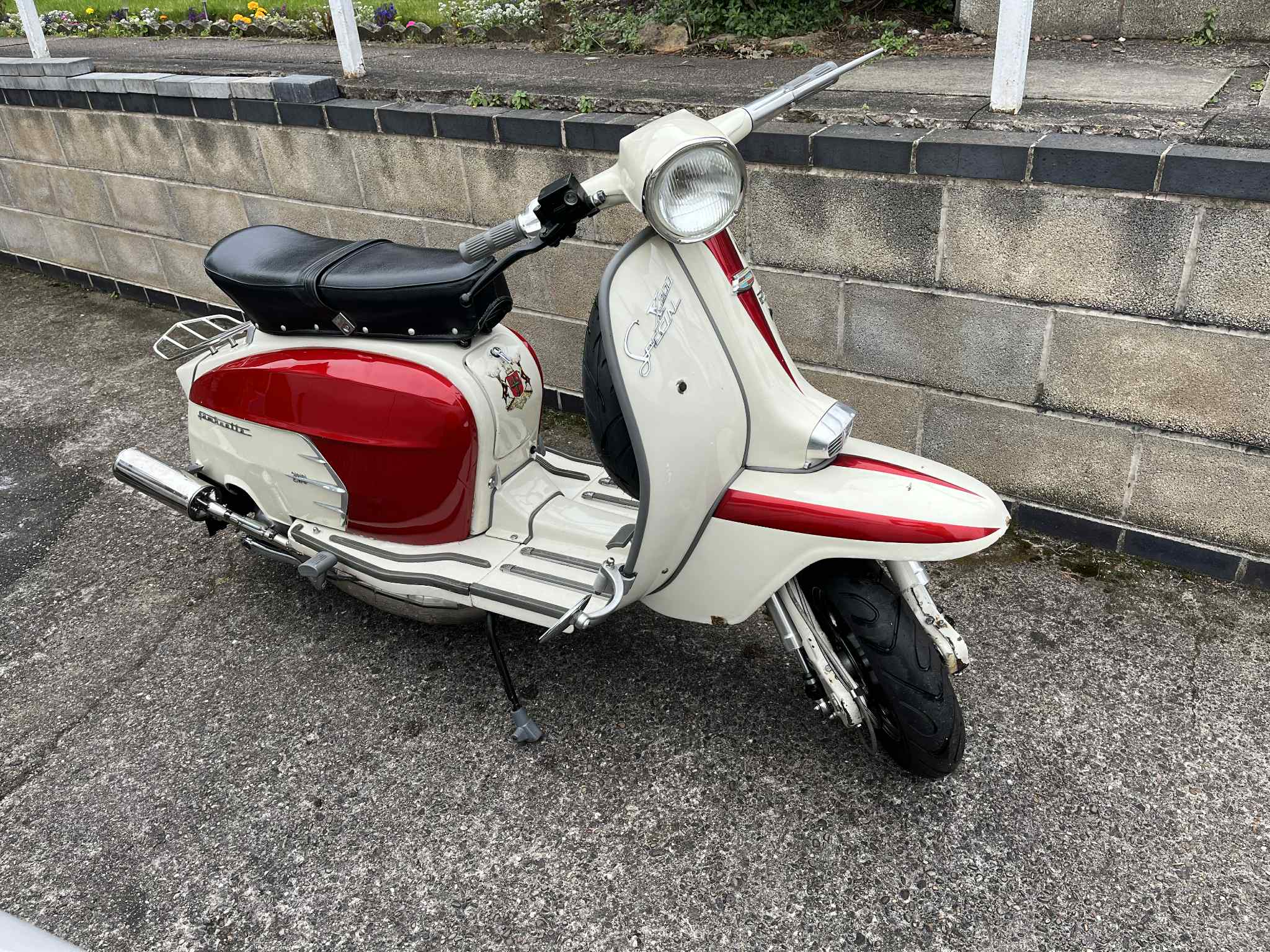 Lambretta LI150 1966, SX200 look alike with GP200 engine (reg as 125) taffy look alike pipe, front disc break, BGM front dampers / shock absorbers. Excellent condition for year. Small holes in leg shield & front mudguard where I removed chrome attachments from. Originally built by Chris King & his team when he had his unit in Nottingham. Historic vehicle, doesn't require MOT, free tax. Viewing by appointment only.
